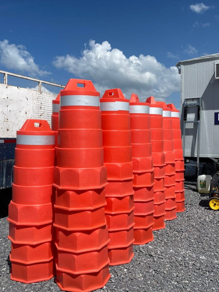 Suministros de equipo de protección de obras y protección personal. Suministros e instalación de diversos tipos de mallas. Fabricación de flecheros y señales a base de leds
